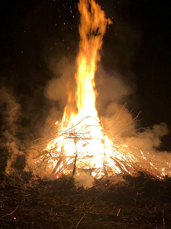 Das Feuer konnte ebenfalls mithalten: es war gigantisch und brannte – dank der unermüdlichen Feuerwehrleute – stundenlang. Die freiwillige Feuerwehr unserer Gemeinde hat wirklich viel auf die Beine gestellt. Stockbrot und Minifeuer für die kleinen Gäste, Getränke aller Art für jedermann, die Würstchen und das frische Brot für die Hungrigen und das Feuer als Augenschmaus und Wärmequelle für alle, die es kuschelig wollten.